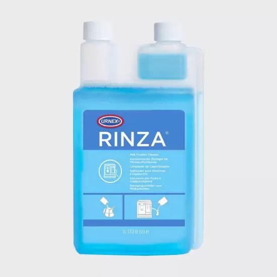 Rinza® Milk Frother Cleaner breaks down milk protein, fat and calcium build-up. It cycles through auto-frothers for easy cleanup and cleans milk lines of auto-frothers, traditional steam wands and steel pitchers. The bottle has a built-in measuring device that delivers over 30 uses per bottle.